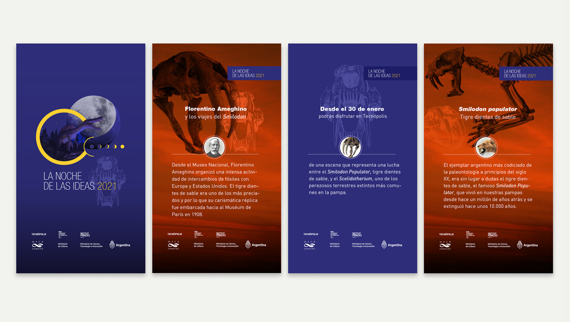 "La Noche de las Ideas" ("La Nuit des Idées" ) es un evento internacional, cultural anual que se celebra en Francia y en varios otros países, incluyendo Argentina. Presenta debates, talleres, intercambios de ideas y programación artística, con el objetivo de abordar temas relevantes de la actualidad. En 2021, la edición en Tecnópolis, organizada junto al Instituto Francés y la Embajada de Francia, incluyó la exhibición de la réplica de un Smilodon populator.